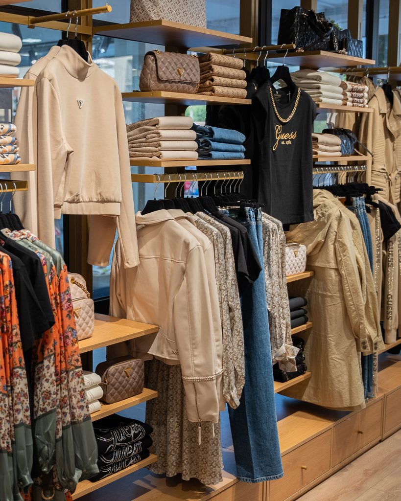 As marcas de destaque aqui são Guess, Tommy Hilfiger e Bestseller, que oferecem uma variedade de opções para todos os estilos e ocasiões. Recentemente, a loja recebeu a nova coleção com as últimas tendências da estação. Entre as novidades, destacam-se o calçado e acessórios da Guess, que têm sido uma forte aposta, tanto pela sua popularidade quanto pela qualidade.