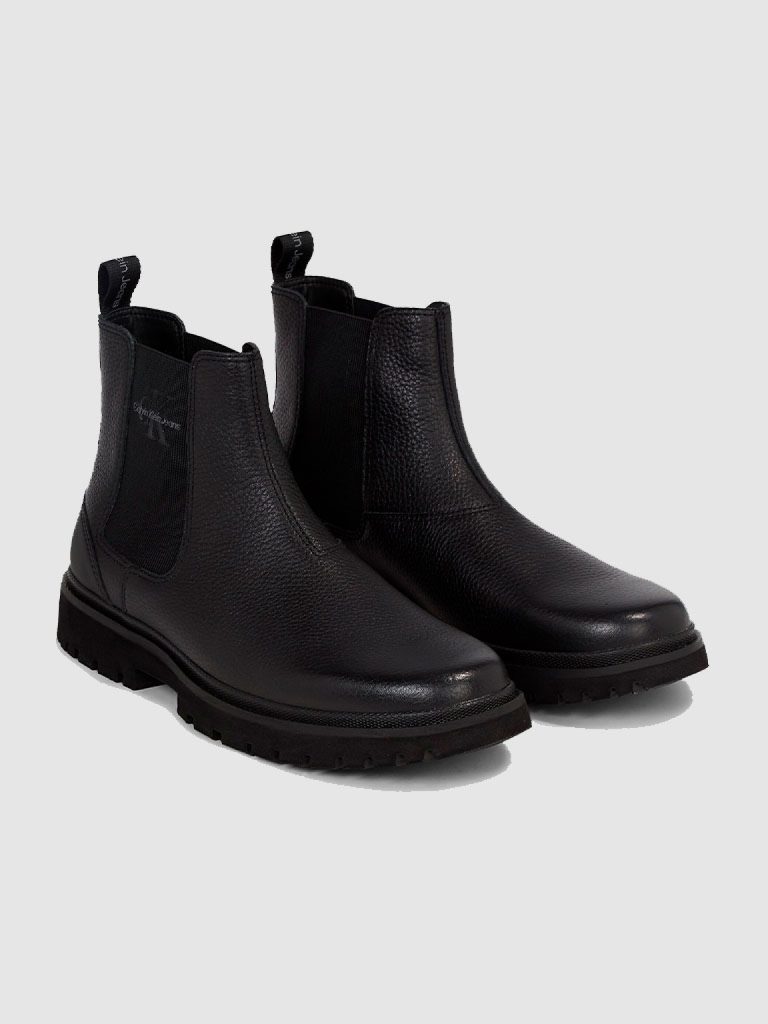 - Calçados resistentes: Botas da Calvin Klein em tons terrosos, perfeitas para o inverno.
