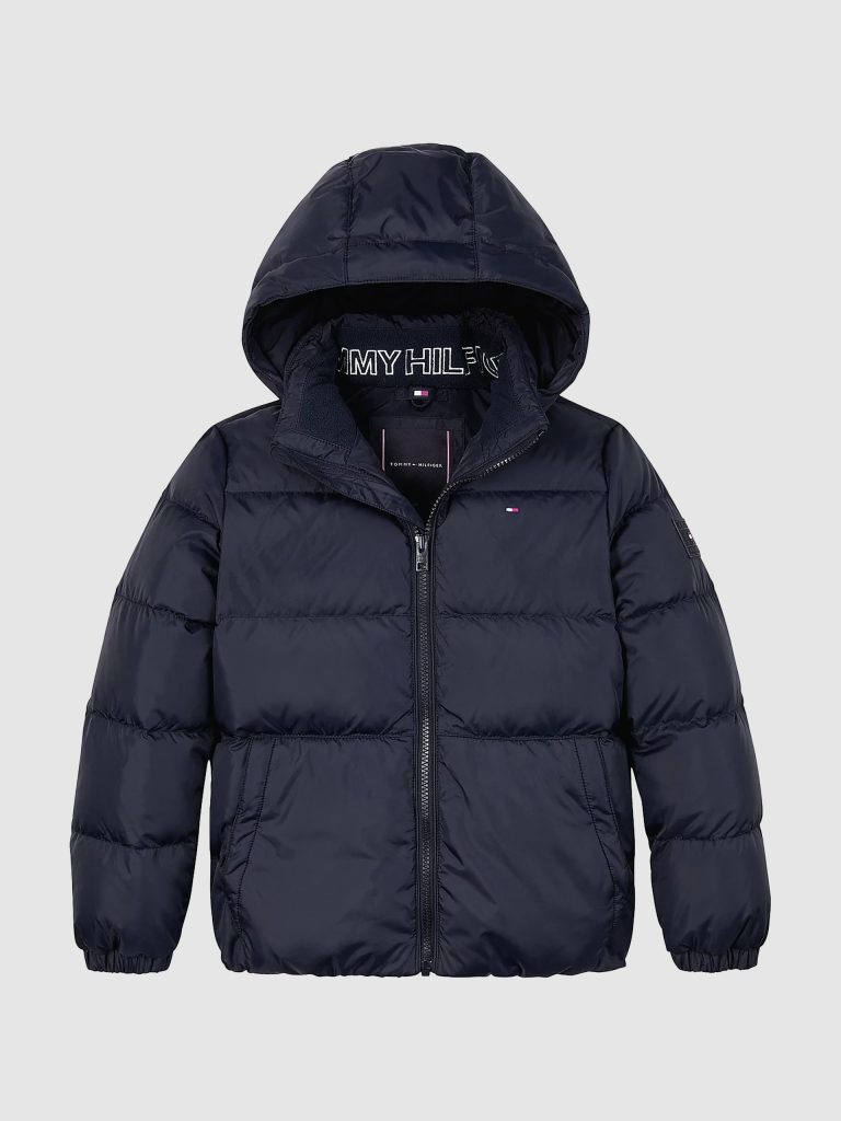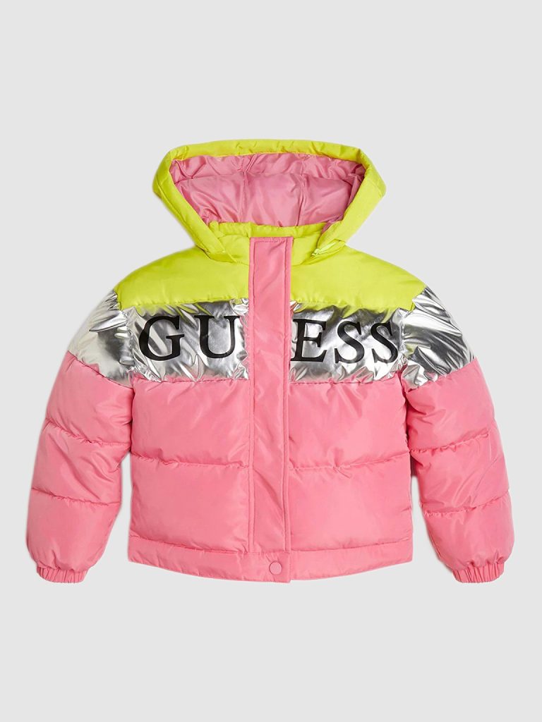 - Casacos e parkas acolchoadas: Opções da Guess, Tommy e Mayoral com estampados e tons vibrantes.
